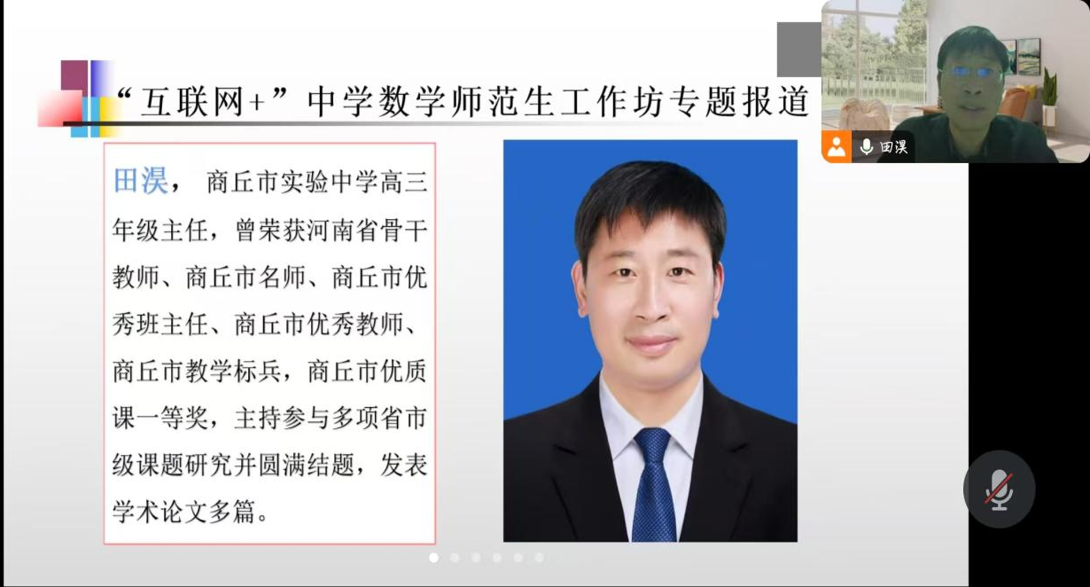为提升师范生综合素质,增强师范生教学反思和教研论文的专业技能,太阳集团tyc151cc于12月24日晚上七点半线上开展了“互联网+”中学数学师范生技能培训工作坊第一次集中培训。此次培训由商丘市实验中学田淏老师主讲,互联网+工作坊全体坊员参加。